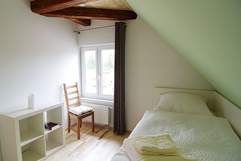 Ein Extraschlafzimmer mit Einzelbett und der Möglichkeit für z.B. ein Kinderbett