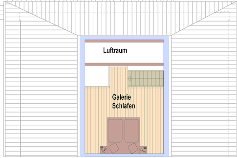 Ein 2. Doppelbett auf der offenen Galerie